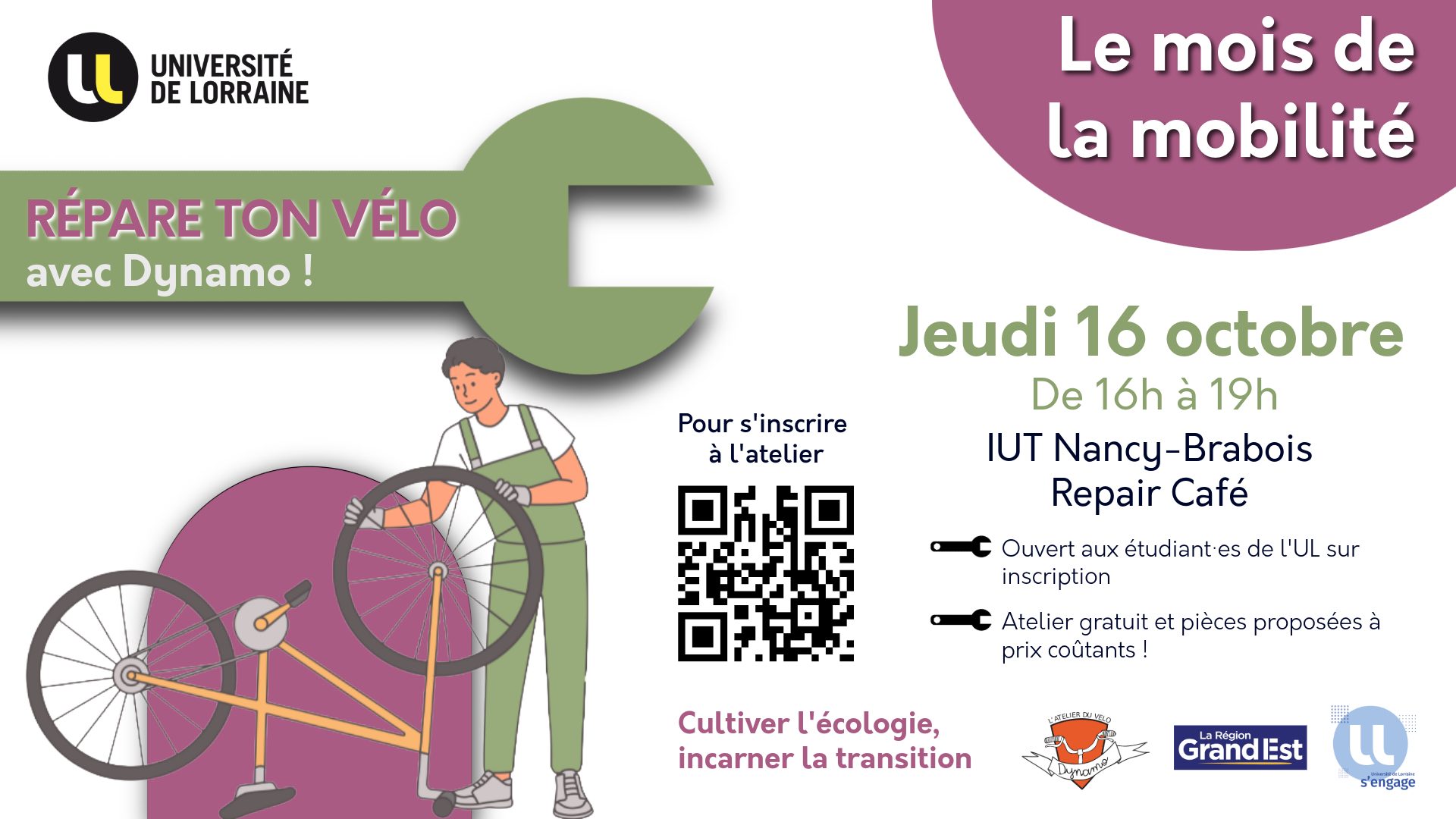 Le jeudi 16 octobre, l’IUT Nancy-Brabois accueille Dynamo, association nancéienne bien connue des amateurs de deux-roues, pour un atelier participatif de réparation de vélos. Dynamo,